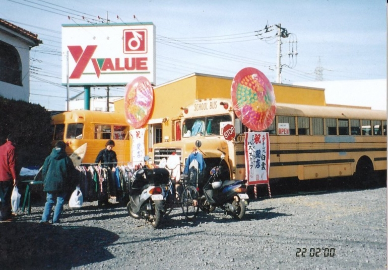 | お陰様で創業25年を迎えました。 アメリカ古着屋バスストップは、2000年2月、川口市江戸袋交番の隣の貸地に、スクールバス2台を交互に並べ、真ん中のスペースを店舗にするため小屋を作りました。 この小屋は多くのボランティア方々のお蔭で10日間で完成しました。お手伝いいただいた方々には今も深く感謝いたしております。 |