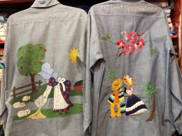 手作り作品です。アメリカの田舎では元カウガールのおばさんが自信作を着用してパーティーに出かけます。シャツのボディーはビンテージBIG MAC等が使われています。