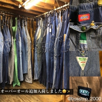 | ずらり並んだオーバーオール 数ある中からお選びいただけます。税込価格4998~ |